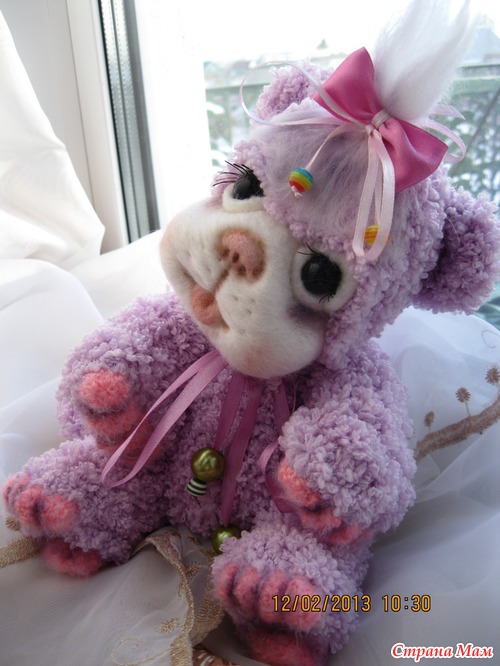 Изабель связана крючком и спицами из детской фактурной пряжи. Мордочка выполнена в технике сухого валяния. Головка поворачивается. Сидит сама а стоит с поддержкой. Ростик 26 см. Читать полностью