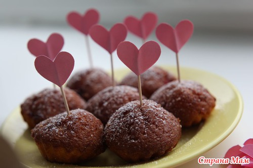 Идея №2: украшаем праздничный стол (двусторонние сердечки на зубочистках), можно испечь кексы в форме сердечек)