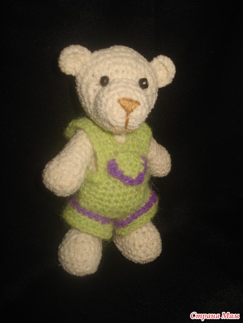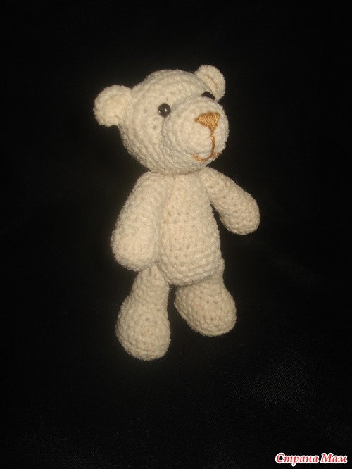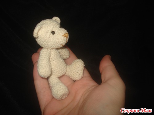 Опробовала первый моток из пряжи, заказанной в интернет магазине. Тоненькие синельные ниточки. Из них получился плюшевый Минимишка росточком 11 см. Он хоть и маленький, но самостоятельный сам стоит и сидит. Читать полностью