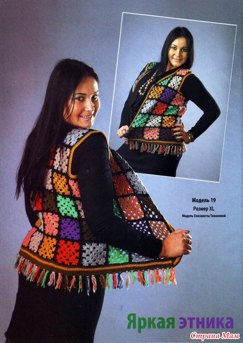 Тэги: вязание крючком, бабушкин квадрат, жилет крючком