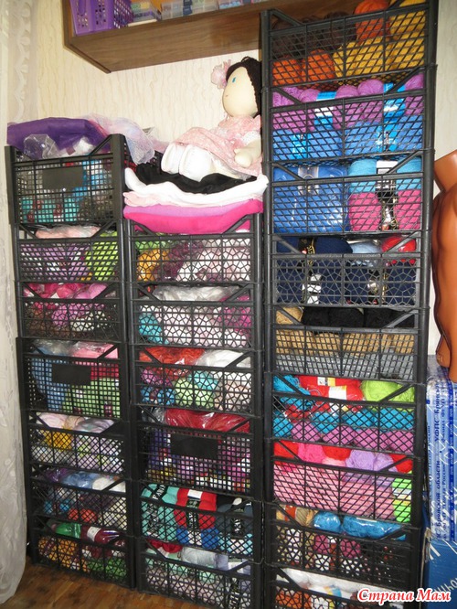 )) Ящички стырены из продуктового магазина, полочки бесплатно забрали с сайта сландо )) Ну а все остальное куплено на оптовом складе магазина пряжи Артвул и с сайта любимых китайцев фурнитуру (все без посредников