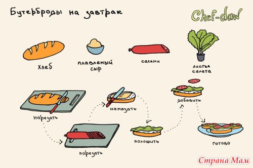 Вот такие рецепты в картинках я нашла в просторах инета. Думаю по таким рецептам можно учить деток готовить (ну под присмотром мамы конечно) Читать полностью