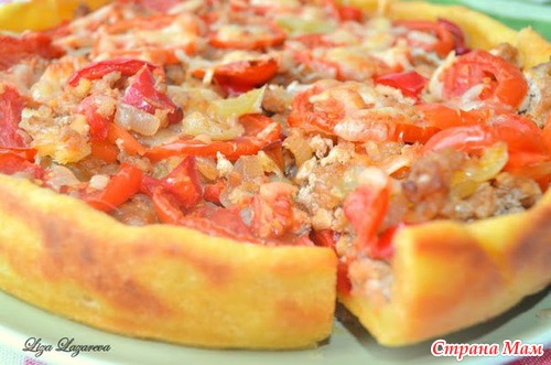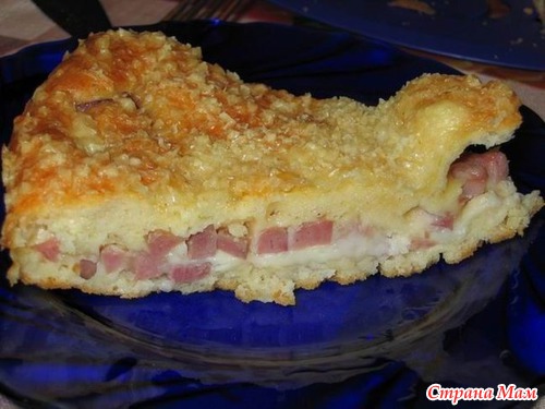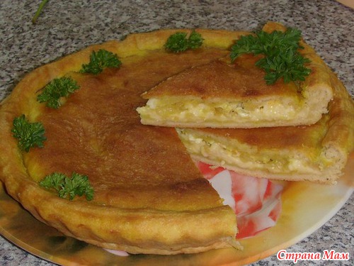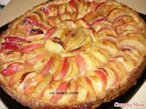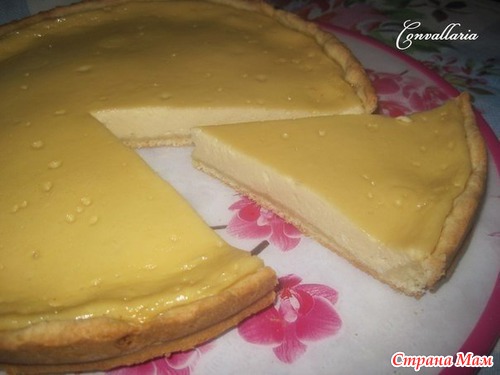Все смешать и вылить на тесто. Сверху смазать желтком или почти полить, т. к. начинка (или покрытие) жидковатая, я прям пальцами понемногу пришмякивала желток на начинку (не знаю, понятно ли объяснила ). И выпекать. Я пекла около часа. Вообщем до подрумянивания. Остужаем и кушаем-наслаждаемся!!!