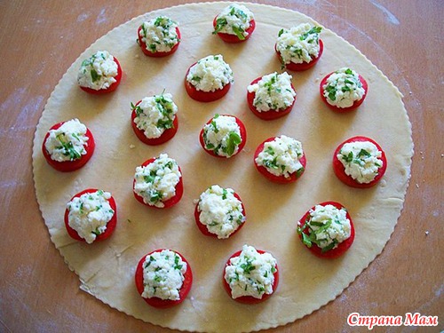 20. Чтобы нижняя часть пирога была сухой, слегка посыпьте нижний пласт пирога крахмалом, а потом уже выкладывайте начинку.
