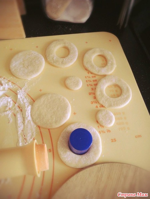 - раскатать тесто, вырезать кружочки (а можно вырезать фигурки)