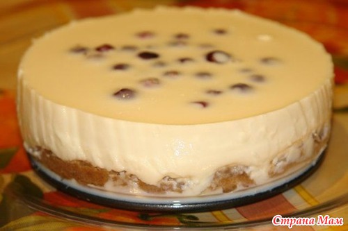 Сверху еще прикроем плёнкой и отправим в холодильник. Часа через три торт готов.