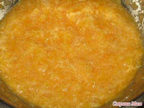 Взбейте 4 желтка с половиной стакана сахара, добавьте в смесь цедру, пюре мандарина и манную крупу. Хорошо все перемешайте.