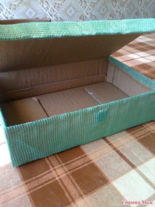 Обклеиваем сеткой коробку снаружи и внутреннюю часть крышки.