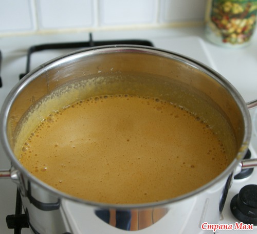 Тогда снимите массу с огня, помешайте её ещё в течение 5 минут, так как она постепенно будет темнеть и приобретёт цвет, как у конфет «Коровка».