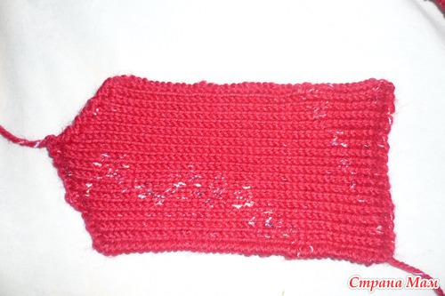 Закончив вязанье, сшиваем боковую сторону большого пальца, а вехние открытые петли туго стягиваем ниткой, конец которой прячем внутри.