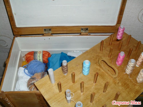 Сундук под рукоделия Внутри отсек для хранения ниток, спиц-крючков и шерсти, отрезов ткани