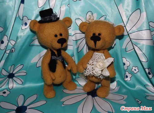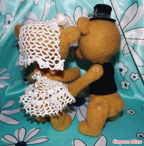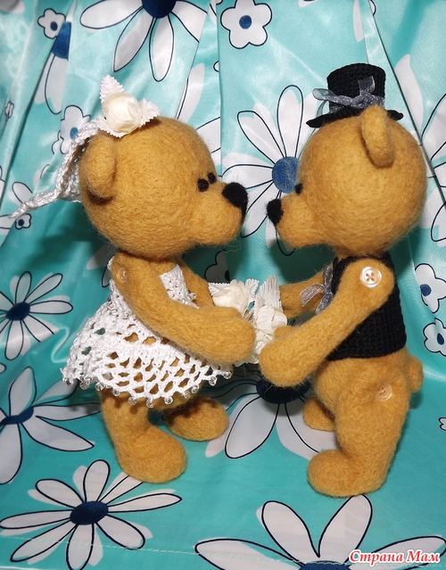 Свалялась очередная парочка мишуток свадебных. На этот раз решила сделать им лапки подвижные.