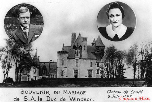 03.06.1937 г. в Шато де Канде, во Франции, Эдуард и Уоллис обвенчались. Презрев запрет англиканских епископов, венчал их преподобный Роберт Андерсон Джердин из Дарлингтона, но из королевской семьи на торжество никто так и не прибыл – правительство Англии не позволило.