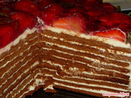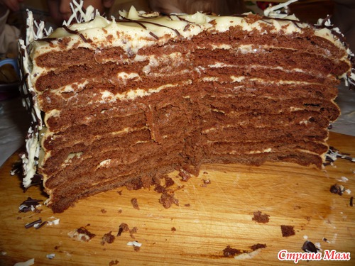 Я пекла "спартак",только добавляла какао не в тесто, а в крем.