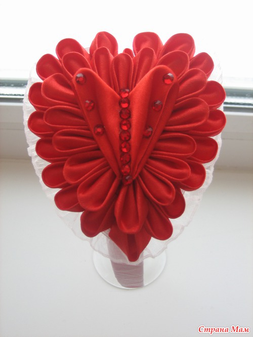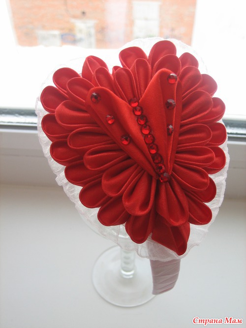Вот сделала для доченьки ободок "Сердечко". Спасибо Юлии crybell за прекрасные работы и идеи. Я учусь делать канзашки, старалась, как могла