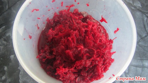 Среднюю свеклу натереть на мелкой терке и выжать сок (можно в соковыжималке)