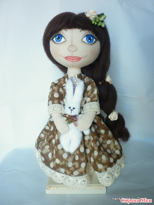 В руках зайчик с плюша. зайку пока не пришила. есть в наличии, шила для МК на телевидение.