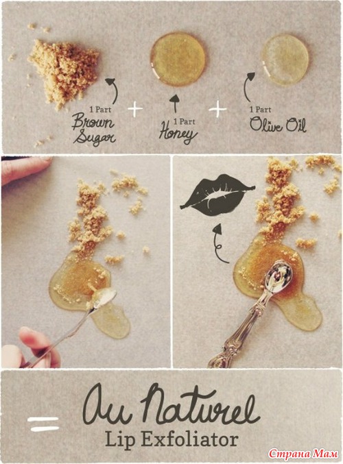 Из категории "проще не бывает". Смешать в равных частях коричневый сахар, мед и оливкое масло, переложить в красивый флакончик и вуаля. Да будем красивы!