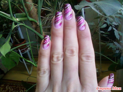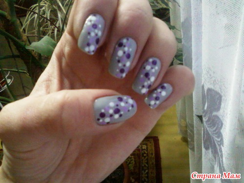 Да, мне он тоже очень нравился. В жизни он смотрелся ещё красивее. Сиреневые кружочки почти не видны на фотке, а в реале получился красивый переход белого в сиреневый и в фиолетовый...