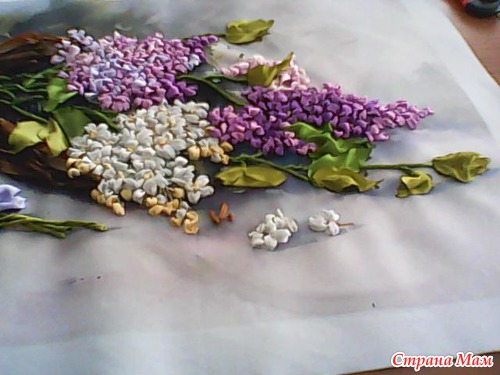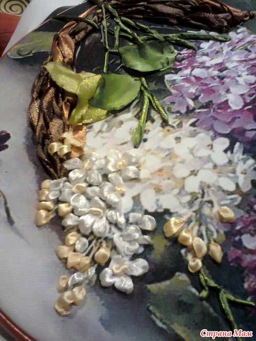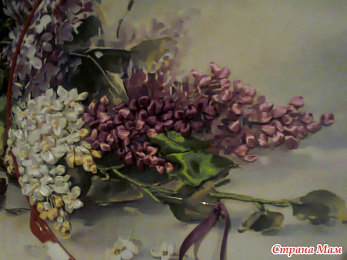 Я слышала про вышивку лентами, но никогда не видела готовых работ. Сначала, когда открыла фотографии не обратила внимания ну какие - то картинки. А потом вернулась и просмотрела еще раз начало и описание,пролистала еще раз. Действительно очаровало, хочу попробовать, загорелась желанием. Жаль пока времени не хватает на такую прелесть.Пойду в отпуск обязательно попробую!!! Вы умничка, очень красиво получилось, сирень как будто ожила.