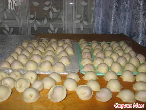 Потому, как у меня налепились пельмешки! И ничего, что на пельменнице! Зато много!И еще часть в морозилке...