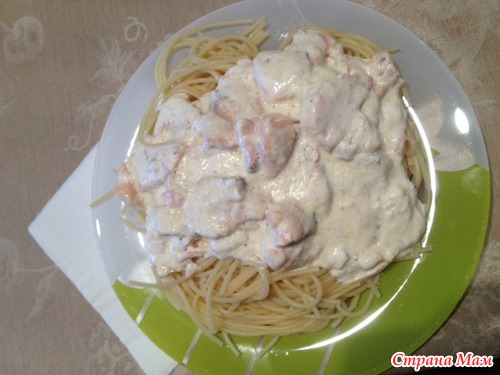 Спагетти с лососем под сливочно-сырным соусом