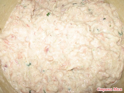 .. добавить яйцо.. перемешать... добавить кефир и муку.. хорошо перемешать (тесто д. б. как на оладьи.. по мере жарки можно будет откорректировать густоту).. посолить, приправить, добавить измельченную зелень...