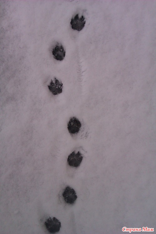 А лапки у нас коротенькие, и походки "виляющая" )))) Вот и остаются на снегу такие следы)))