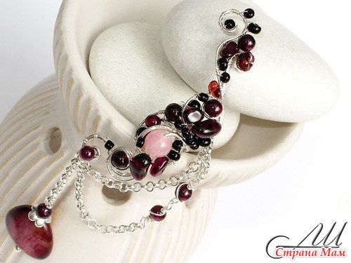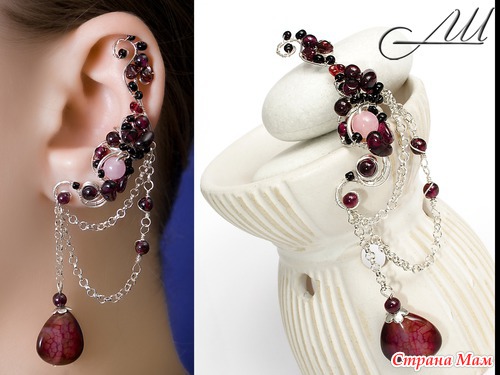 Кафф на левое ушко с бусинами натурального граната, розового кварца и агата "вены дракона". Украшение подойдёт и для тех, у кого не проколоты ушки. Кафф крепится за счёт небольших скобочек, которые слегка обжимаются вокруг наружного завитка ушной раковины.