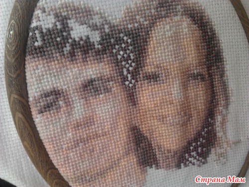 Вышивала несколько месяцев, тайком от молодого человека. Подарила ему на день рождения)