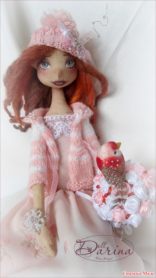 В работе были использованы синтепон, лён, шерсть для валяния, винтажный шелк, акриловая нить, атласные ленты, лента из органзы, кружево, бисер, бисерное плетение, трикотаж. Ручная роспись.
