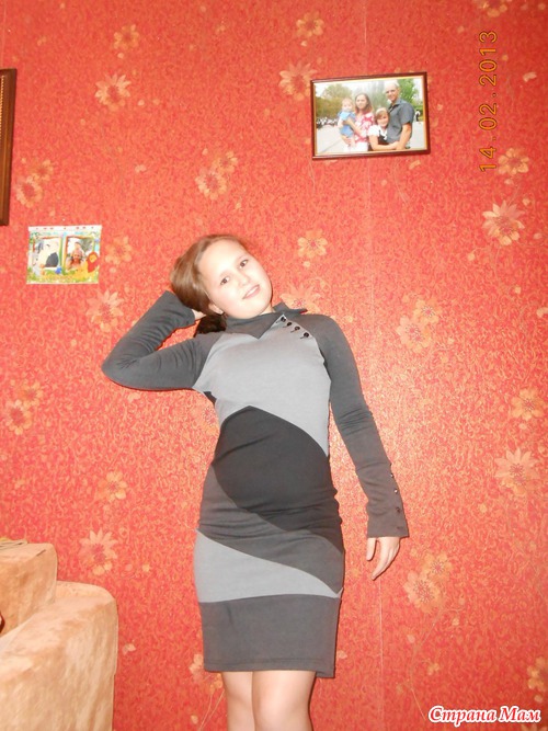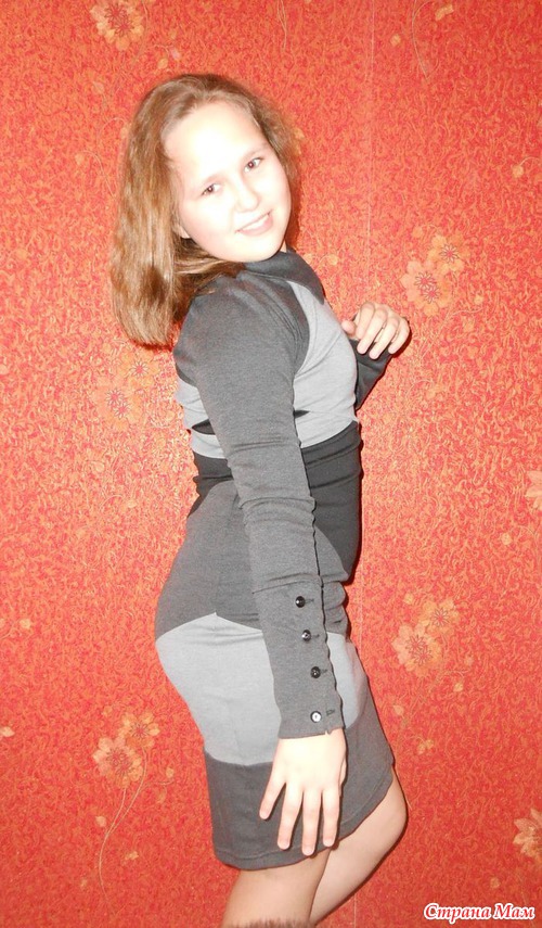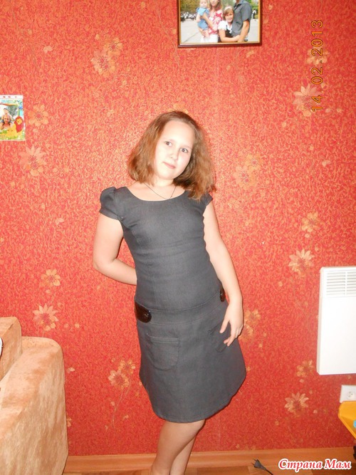 но нам мало. Видно, что дочь с неидеальной фигурой, оно только испортило, показало все недостатки. Теперь пристраиваем.Это платье №650 пришло совсем недавно. Был свободен 38 размер, решила взять ей в школу носить, так как предыдущее висит в шкафу без дела. Оказалось маломерным, но в принципе подошло, так как ткань стрейчевая, хоть и плотная очень. На груди село, а была бы больше, было б хуже. Решили всё-таки оставить, хоть и длинновато, но ведь ещё в рост дочь пойдёт, перешивать смысла не вижу.