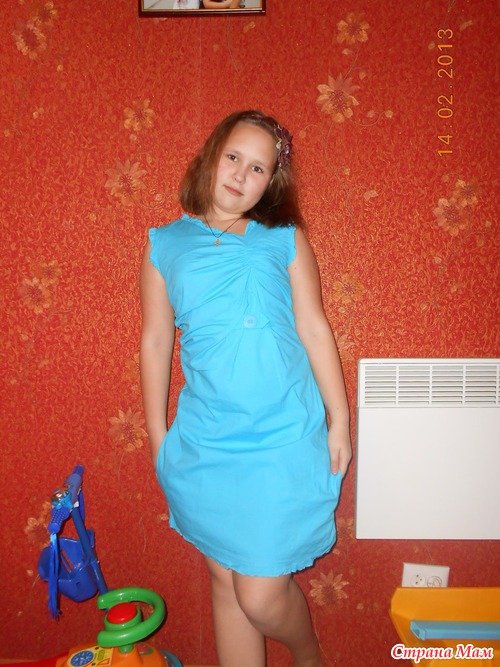 После приятной первой закупки Алёнка33 вскоре открыла следующую. Её я не могла пропустить, так как хотелось ещё каких-то фасончиков новых и на лето хотела себе сарафан, но не судьба. Пришлось дочке отдавать, так пришёл сарафан ни то ни сё, если честно. На мне сел никак. Такой он на сайте: http://www.montella.com.ua/products/plate__228 На самом деле это украшение на груди просто висит, как непонятно что