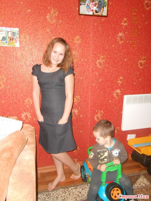 но нам мало. Видно, что дочь с неидеальной фигурой, оно только испортило, показало все недостатки. Теперь пристраиваем.