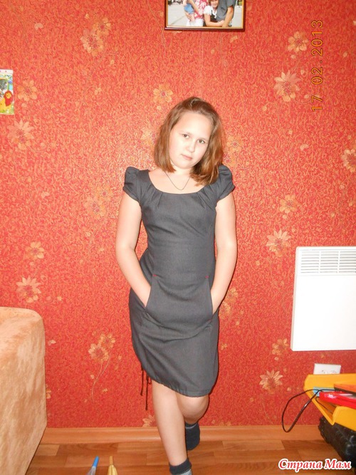 Это платье №650 пришло совсем недавно. Был свободен 38 размер, решила взять ей в школу носить, так как предыдущее висит в шкафу без дела. Оказалось маломерным, но в принципе подошло, так как ткань стрейчевая, хоть и плотная очень. На груди село, а была бы больше, было б хуже. Решили всё-таки оставить, хоть и длинновато, но ведь ещё в рост дочь пойдёт, перешивать смысла не вижу.