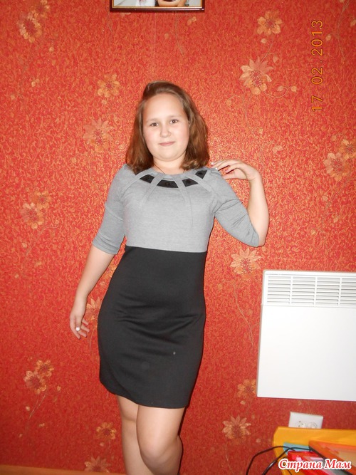 но нам мало. Видно, что дочь с неидеальной фигурой, оно только испортило, показало все недостатки. Теперь пристраиваем.Это платье №650 пришло совсем недавно. Был свободен 38 размер, решила взять ей в школу носить, так как предыдущее висит в шкафу без дела. Оказалось маломерным, но в принципе подошло, так как ткань стрейчевая, хоть и плотная очень. На груди село, а была бы больше, было б хуже. Решили всё-таки оставить, хоть и длинновато, но ведь ещё в рост дочь пойдёт, перешивать смысла не вижу.