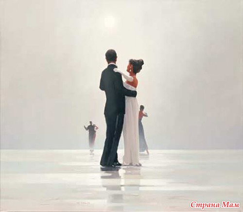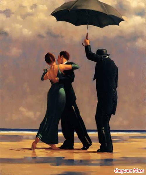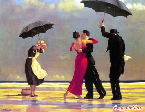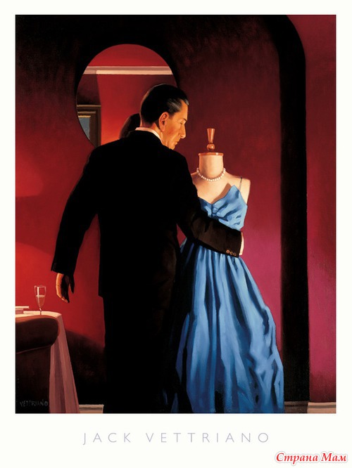 Посмотрите, сколько страсти и чувственности в «Поющем дворецком». Мы почти слышим музыку и чувствуем настроение. Веттриано любит изображать танец. Он интуитивно чувствует, как передать романтизм и сексуальность пары. Ведь вальс особенный, он один из естественных и доверительных элементов, который связывает танцующих. Вальс кажется совершенной метафорой, воплощающей различие полов и их взаимодействие. Вальс, как аналогия отношений, помогает совершать шаг за шагом и учиться доверять партнеру без слов. Танцующая пара символизирует единение мужчины и женщины. Красное платье леди вызывает воспоминания. «Было, было нечто подобное в моей жизни», – мелькает в памяти. Какой мужчина не хочет танцевать с леди в красном? Какая женщина не мечтает оказаться той леди?