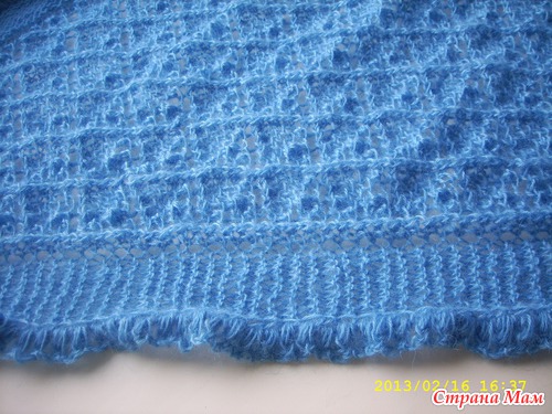 Связала из этой пряжи свой первый в жизни платок. Пряжа понравилась, порадовал метраж, на такой платок ушел ровно один моток. Нитка равномерная(без утолщений), за все 500метров, попался всего лишь один узелок.
