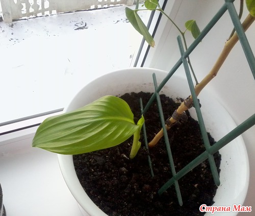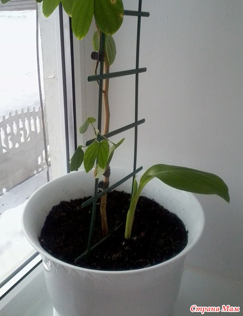 Помогите определить, что это за зверь! Имею привычку - тыкать разнообразные семечки в горшки с цветами. Вот и рядом с орхидейным деревом (баухиния) вылез какой-то листочек, а я совершенно не помню, что могла посадить там. Помогите пожалуйста...