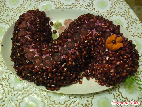 Картофель и свеклу отварить. Говядину, картофель, лук, орехи мелко порезать, свеклу натереть на терке. Все составляющие салата разделить пополам. Одну часть продуктов выложить в салатник слоями в следующем порядке: говядина, картофель, лук, орехи, свекла, гранат. Каждый слой промазать майонезом. Затем вторую половину продуктов. Получается двухэтажный салат, верхний слой состоит из зерен граната. Дать блюду постоять при комнатной температуре в течении часа.