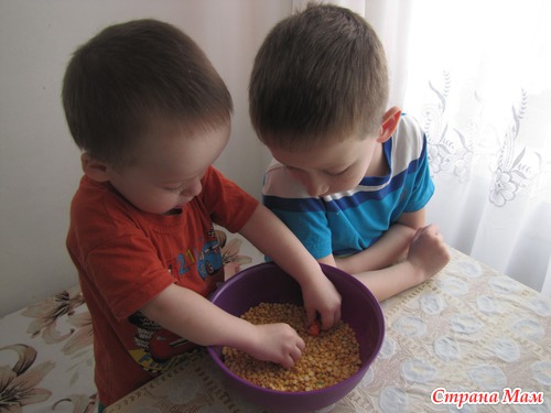 Тут же и любимым сашкиным делом позанимался - проталкивал горошины в воронку