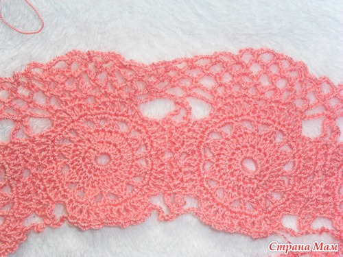 Перехожу к вывязыванию самого лифа. в описании нужно 2 ряда (но там вязалось платье крючком №3), я их увеличиваю для своего крючка №1,5мм. Вяжу 2 ряда, потом вывязывать реглан по схеме.