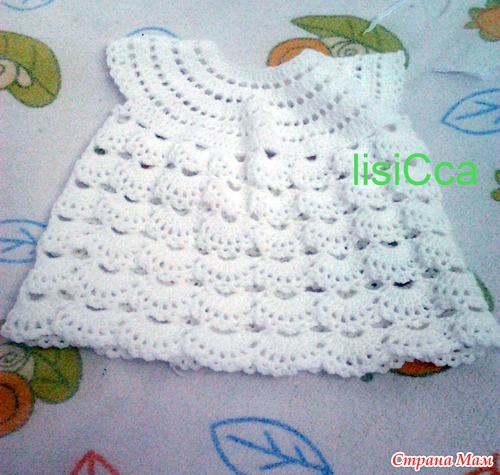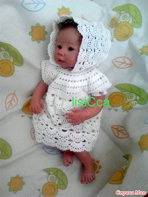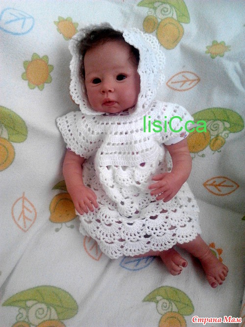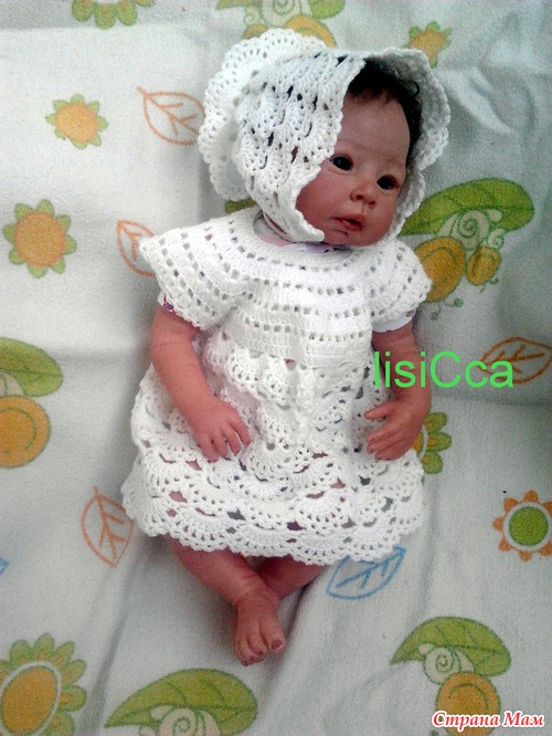 Нежный и воздушный комплект для маленькой принцессы состоит из чепчика и платьица. Идеально подойдет как подарок на рождение или на выписку. Выполнен крючком из детского акрила, мягенький =)