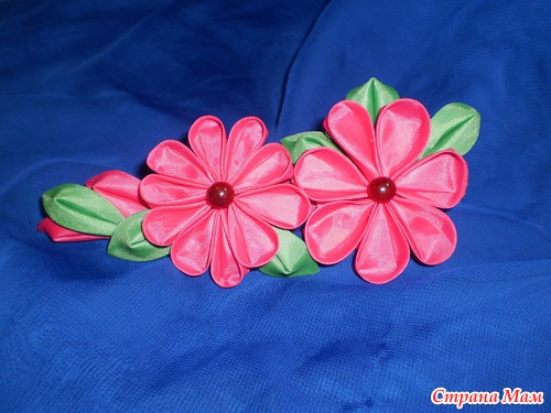 Делала цветы из тонкой ленты, не атласная, шириной 5 см. Ленту обработала желатином, высушила и прогладила утюгом. Работать было не привычно, но очень интересно. Вот что у меня получилось.
