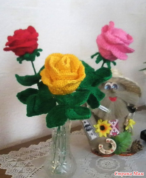 Я тоже цветы никогда не вязала, а соседская девочка просит помочь связать маме в подарок.