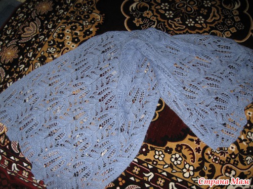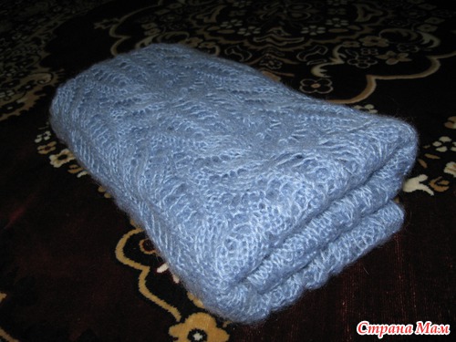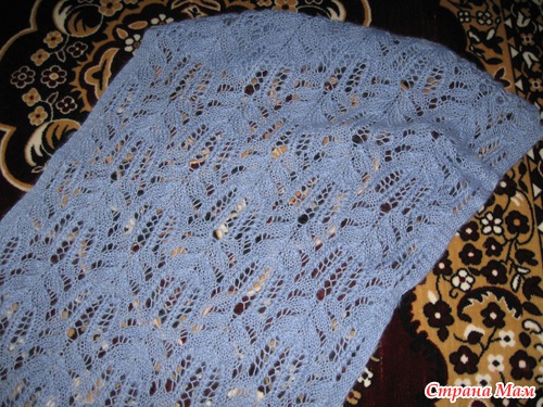 Вот такой шарф у меня связался маме на Новый год, но получилось его сфотографировать только сейчас, когда мама приехала в гости. Это моя первая работа из ангоры рисунком медвежьи лапки, очень он мне нравиться и вот решила его освоить и сделать маме подарок. Вязала я его из Alize Angora Gold спицы №4. Ушел 1 моток. Мама не любит сильно длинные шарфы. Получился мягкий, воздушный и теплый, мама очень довольна и носит сейчас только его.