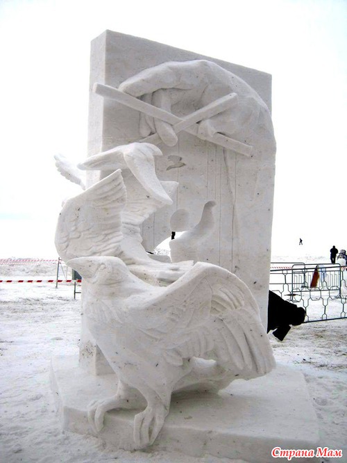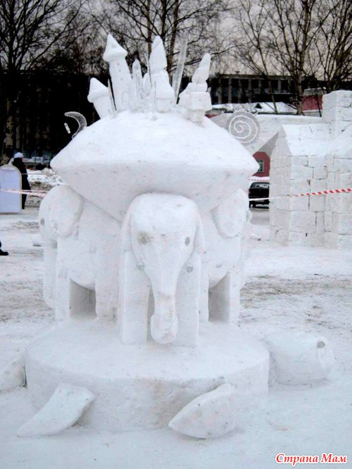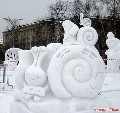 Среди снежных скульптур работы делились на малый и большой куб