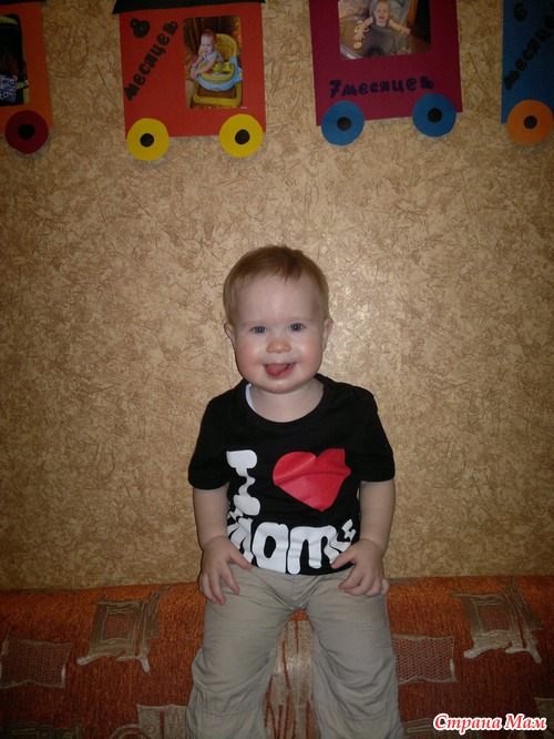 Что иы умеем к году? Егор ходит сам с 10 месяцев, вес 9,520 кг, рост 77 см, зубов 6 (последние два прорезались ко дню рождения), с техникой на "ты" - включает и выключает машинку стиральную, ноутбук, разблокирует телефоны, на телефоне мамы включает музыку и мультики. Говорит мало: ку-ку, оп-па, пап, ки (киса), вууу (автомобиль), Атяй! (отстань - любимое словечко сестры и брата
