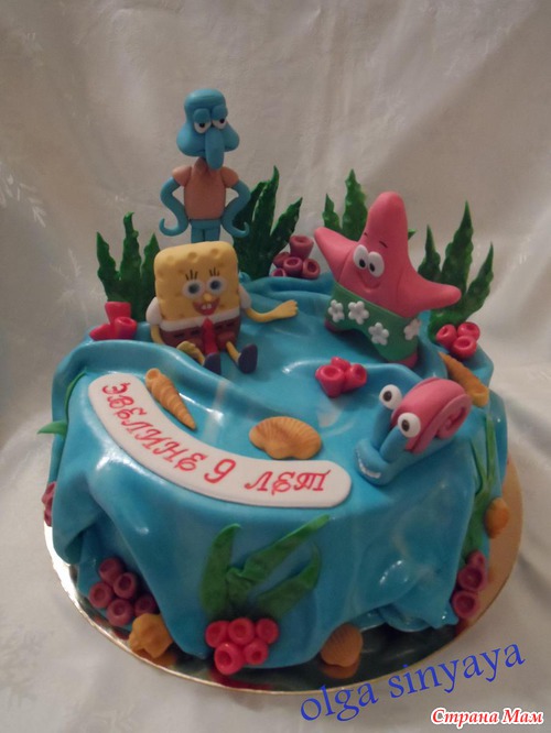 Первый раз делала Губку Боба с маленькими фигурками, вес 3 кг