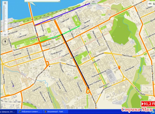 3. Маршрут от Драмтеатра до ГлавПочтамта(линия выделена зеленым цветом).